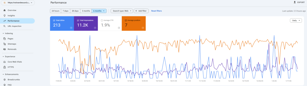 Vein & Wound Experts Google Search Console Data