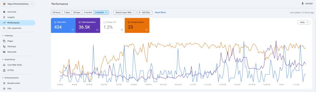 The Vein Institute of the Desert Google Search Console Data