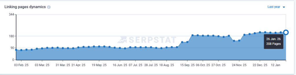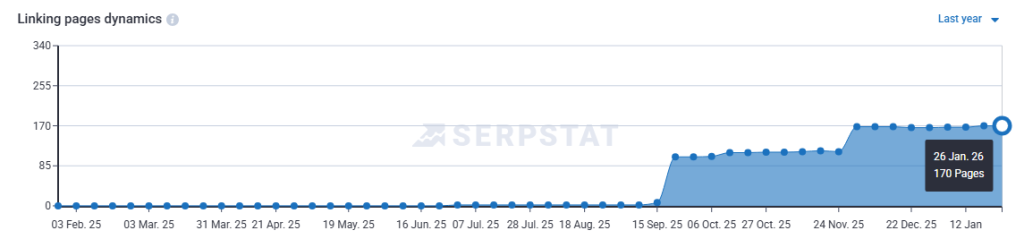 Here’s how the growth of referring domains looks. Source: Serpstat